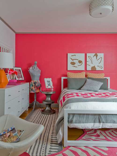 Наверняка первая ассоциация, которая у вас возникла при упоминании выбора цветовой гаммы для комнаты девочки, это розовый цвет. Этот цвет настолько часто применяется для интерьеров девчачьих детских комнат, что многие родители скажут: «Только не розовый». Да, несомненно, цвет может показать вам раздражающим и для девочки такого возраста уже немного детским, но у розового очень много оттенков, которые дадут совсем другой эффект, чем розовый в чистом виде. Перечислим основные из них: персиковый, блекло-алый, пастельный, коралловый, светло-розовый, лососевый.