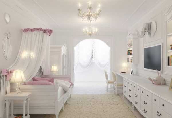 В таком случае можно сделать настоящую комнату принцессы, с большой кроватью и пышными занавесками, где также будет огромное зеркало.