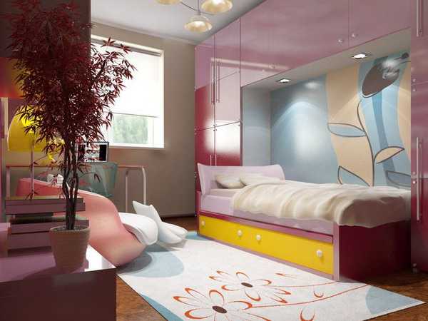 Детская комната должна быть разделена на несколько важных зон. Это зона сна, зона хранения вещей и рабочая зона. В зоне сна нужно установить удобную кровать, в рабочей зоне разместить стол для компьютера и занятий учебой, а также хобби, в зоне хранения обязательно должен присутствовать большой шкаф, в котором юная модница сможет хранить все свои наряды. Если позволяет место, то очень хорошо было бы установить туалетный столик с большим зеркалом. Также очень важно оставить хоть небольшое пространство для игр.