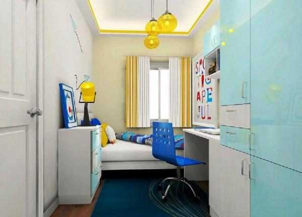 - Дизайн небольшой детской комнаты в 12 кв м должен быть максимально практичен. Поэтому стоит отказаться от пышных гардин, лишней мебели, больших мягких игрушек, отдав предпочтение свободному пространству и хорошему освещению.