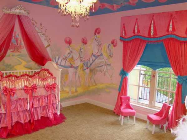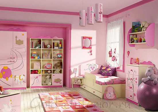 Безусловно, розовый – самый популярный и самый подходящий цвет для оформления детской. Вы можете выбирать из множества его оттенков – от нежно-перламутрового до насыщенной фуксии. В розовой комнате будут уместно смотреться и любые декоративные «излишества» — рюшечки, бантики, балдахины.