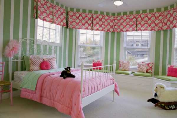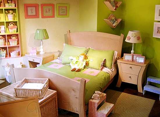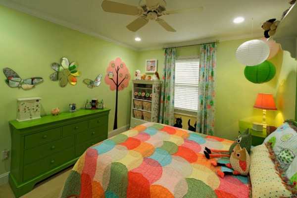 Зеленый цвет славится своим успокаивающим и гармонизирующим воздействием, поэтому отлично подходит для оформления детских комнат. Но речь не идет об использовании бледных и тусклых тонов – в этом возрасте как нельзя лучше воспринимаются сочные оттенки, как салатовый и лайм. Вы без труда подберете им яркую пару – тот же розовый считается самым лучшим цветовым акцентом.