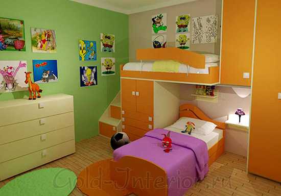 В небольшой комнате мебель лучше расставить вдоль стен, освободив центр для игр и отдыха.