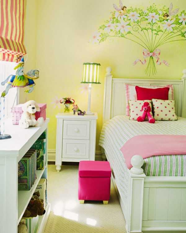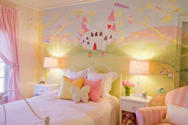 Ваш лучший друг в обустройстве комнаты для девочки 3-5 лет – настенная роспись! Нет более удачного способа погрузить помещение в сказочный мир, сэкономив уйму денег и не захламив при этом пространство.