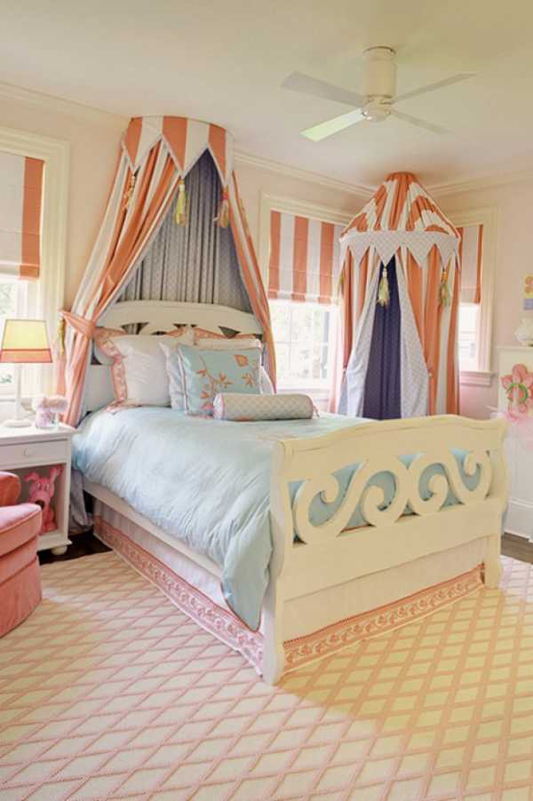 Маленькие девочки до 9-11 лет мечтают о кроватях с балдахинами, напоминающими сказочное ложе принцесс. Для девочек-подростков на первом месте стоит стильное, современное оформление, ведь чем старше становится ваша дочка, тем больше она интересуется модными тенденциями.