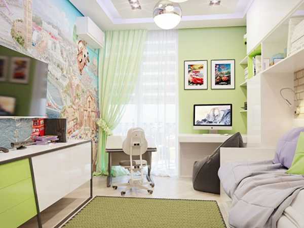 Вторым приемом может быть выбор более близких цветов. Например, общая гамма комнаты может быть зеленой, но в уголке мальчика будет выбран нефритовый оттенок, а в уголке девочки – цвет лайма.