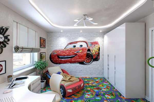 Ремонт и обустройство детской комнаты для мальчика выглядят немного иначе – в духе путешествий, ковбоев звездных войн, спорта и боевиков. Это подразумевает наличие соответствующих рисунков на мебели или, к примеру, космической формы светильники по всей комнате. Как истинные конструкторы по своей натуре, мальчики больше всего ценят в интерьере комнаты практичность и функциональность ее оформления и содержания. Чаще всего им подходит компактная и простая мебель с большим количеством полок и шкафчиков. Даже небольшой письменный стол желательно продумать с выдвижными ящиками для мелких вещей.