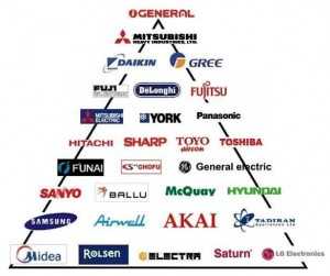 Третья группа – это недорогие кондиционеры, которые под разными именами выпускается на заводах в Китае. Это могут быть как и совершенно незнакомые марки, так и названия, которые на слуху и перекликаются с известными фирмами, выпускающими бытовую технику.
