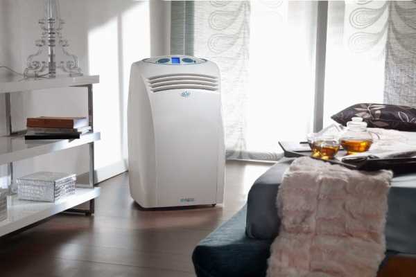 - Мобильные. Такие кондиционеры не требуют монтажа, достаточно маневренны, но производят много шума и занимают место в помещении, что ощутимо в малогабаритных квартирах.