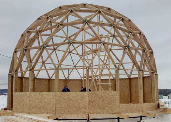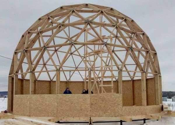 Каркас для купола диаметром менее 3 метров можно сделать из дерева. Если купол имеет размер более 3м — каркас должен быть из металла.