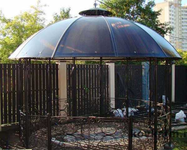 Если же купол имеет диаметр больше чем 3 м, то для сооружения каркаса уже используется металл. В данной конструкции каркаса «журавцы» к опорному столбу будут скрепляться распорками, выполненными из металла. Для обрешетки применяются полосы из металла, которые устанавливаются с шагом от 40 до 50 см. Кроется такой купол металлической фальцевой кровлей. Зачастую металлические листы крыши имеют вид чешуек, в таком случае следует учесть, что при их монтаже швы необходимо пропаивать.