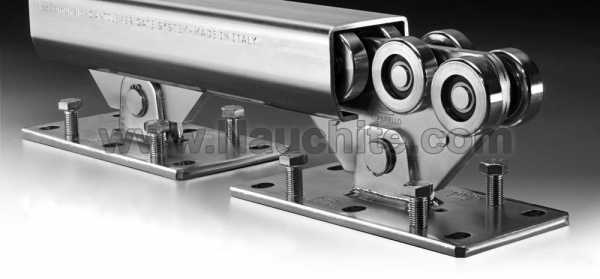 • Несущий профиль укрепляется на опорах по краям воротного проема. По ним перемещаются ролики.