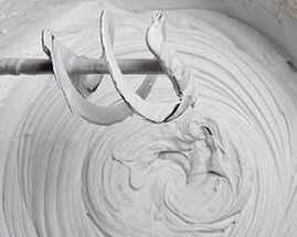 Технология традиционная. Изначально в емкость набирается нужное количество чистой воды температурой порядка 20ºС. После чего в нее погружается работающий миксер и постепенно досыпается сухая смесь. По консистенции готовая смесь должна напоминать густую сметану.
