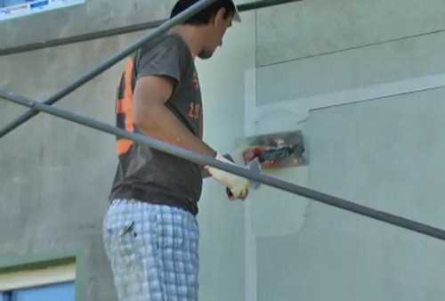 Совет: вообще нужно стараться заканчивать стену за один день, дабы не делать соединений. Для этого лучше обзавестись напарником. Один человек будет накладывать и выравнивать раствор шпателем, а второй затирать стену, придавая ей окончательный вид.