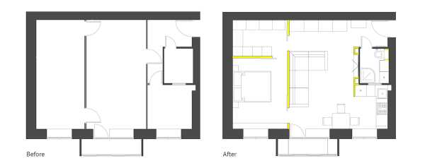 | Перепланировка | Стены внутри маленького помещения, делают его еще более небольшим, режут его. Поэтому, если они не несущие, лучше разобрать. |