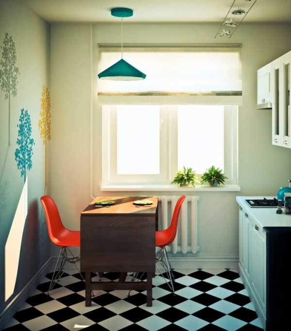 Обеденную зону нужно организовать у окна, предпочтительнее модель стола, которая крепится к стене, при необходимости складывается. Подоконник на маленькой кухне не для цветов. Он должен выполнять более серьезные функции. Если широкий вариант, это может быть стол или продолжение рабочей зоны для приготовления пищи.