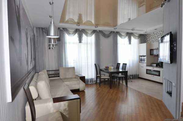 Занавески или шторы до пола немного вытянут помещение. А ещё не забудьте про отделку в светлых тонах, грамотную расстановку предметов и правильное освещение.