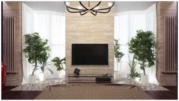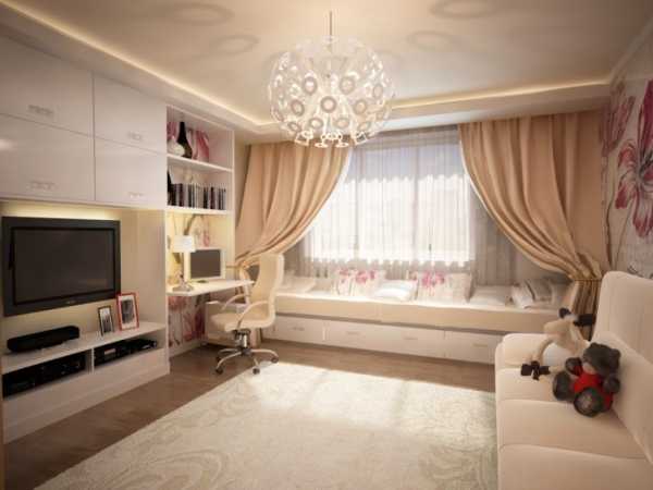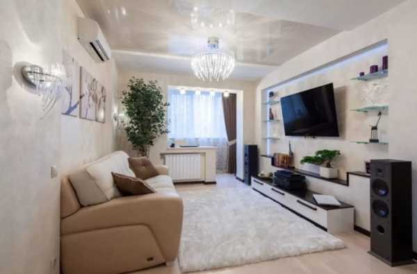 Правильнее всего предоставить преимущество светлым тонам. Для того чтобы увеличить зрительную составляющую необходимо избавляться от перегрузки помещения лишним. Для этого на окна правильные будет установить жалюзи, для телевизора смонтировать поворотный кронштейн, а акустику расположить по потолку.