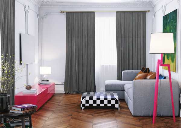 Оттенки темного, либо напротив излишне броские, если речь идет о дизайне комнаты, в однокомнатной квартире, не следует применять повсеместно, достаточно обойтись парочкой ударений.