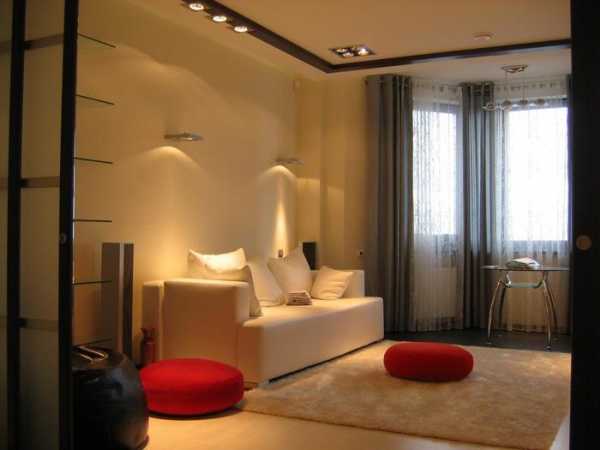 Дизайн интерьера однокомнатной квартиры во многом зависит от грамотно подобранного освещения.В качестве осветительных приборов декораторы рекомендуют использовать: