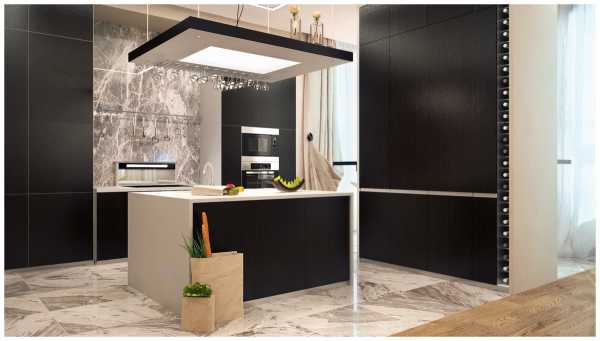- Светодиодные светильники. Современное освещение не только удачно отделит рабочую зону кухни от обеденной зоны, но и поможет наиболее ярко осветить декоративные элементы, например античную скульптуру или репродукцию известных художников.