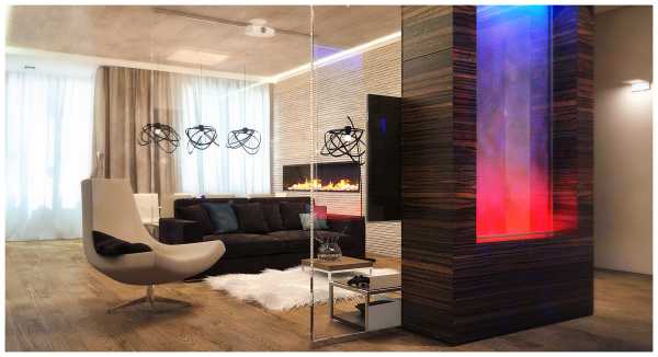 Красивым разделительным элементом может служить аквариум с рыбками или декоративная стенка, собранная из стеклянных блоков.
