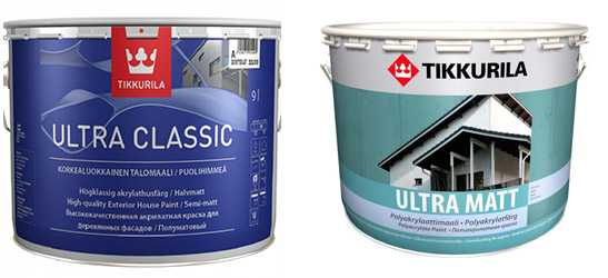 Краска Ultra Talomaali на акрилатной основе. Она является устойчивой перед дождем, перепадами температур, повышенной влажностью и ультрафиолетовыми лучами. Используется для обработки дерева. Готовое покрытие — полуматовое. За многие годы оно не теряет своего внешнего вида. Расход состава — 1 л на 4-6 м2 при пиленом дереве, и 1 л на 7-9 м2 при гладкоструганном. Разбавлять нужно водой. Серия красок включает в себя еще две разновидности: Ультра Классик и Мат. Они отличаются степенью своего блеска.