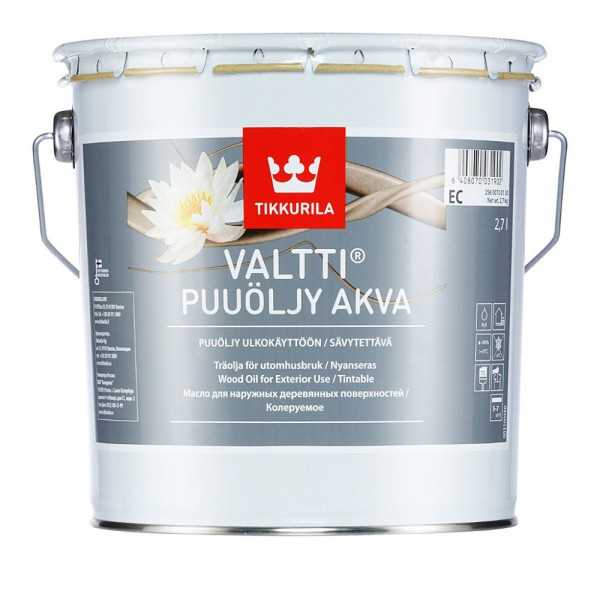 Фасадная лазурь Тиккурила Valtti Akvacolor. Смесь, разбавляемая водой, на базе натурального масла. Используется для обработки наружных поверхностей. Будучи пропитанной этим составом, деревянная поверхность защищена от внешнего негативного влияния. Ею обрабатывают стены и заборы из дерева. Наносить можно при помощи кисти или краскопульта. Расход — 1 л на 4-12 м2 (показатель зависит от гладкости поверхности).