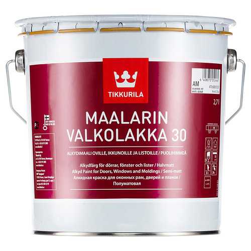- Алкидный состав Maalarin Valkolakka, что имеет отличные укрывные свойства. Довольно низкий расход — 1 л на 15 м2.