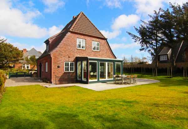- У датской крыши треугольная полувальма располагается в верхней части ската. Ее основание соединяется с вертикальным фронтоном, образуя выпуклый угол.