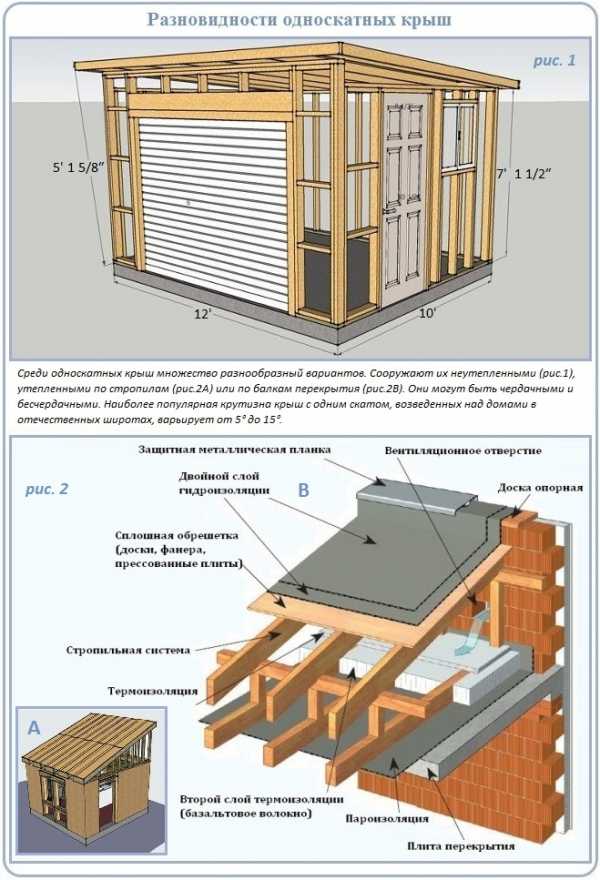 Односкатная крыша каркасной постройки
