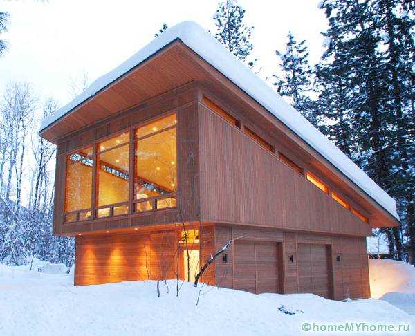 - Односкатная кровля позволяет обустроить мансарду. Однако размеры этой комнаты будут не большими.