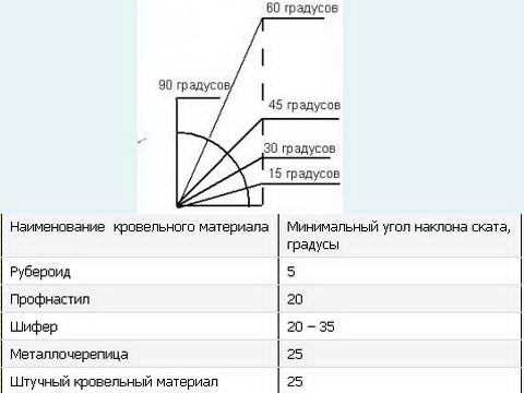 - градуса наклона крыши;