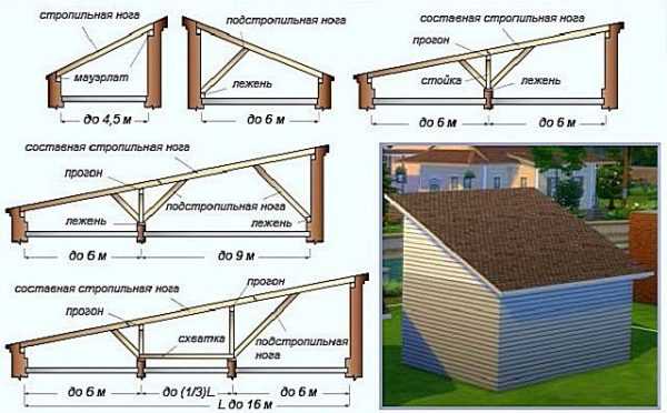 Для крыш отдельно стоящих построек расчеты следует производить с учетом всех типов статических и динамических нагрузок, действующих на конструкцию в течение года. Отметим, что стропильные ноги односкатных систем рассчитываются, как горизонтальные балки.