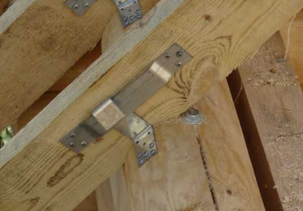 - Установленные стропила для устойчивости соединяют с балками перекрытия стойками, подкосами и другими элементами, о которых шла речь выше. Закрепление их производят металлическими скобами и уголками, что добавляет жесткости конструкции.