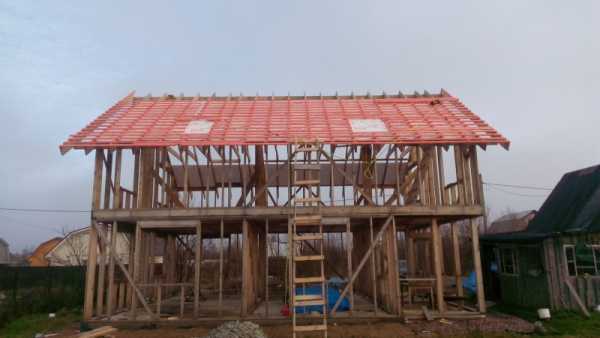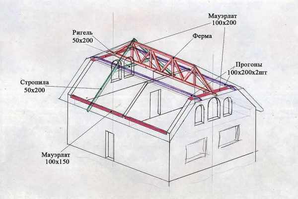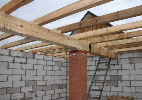 - устройство каркаса. Под этим подразумевается прикрепление к мауэрлату стропил. Оптимальный размер балок принимается сечением 7х15 см.