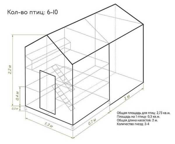 Расчёт размеров курятника на 10 кур
