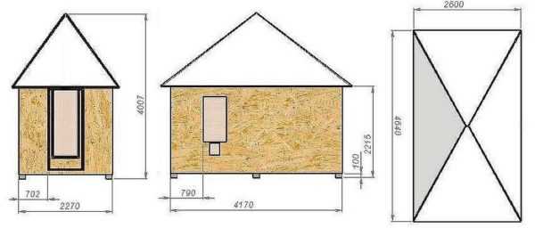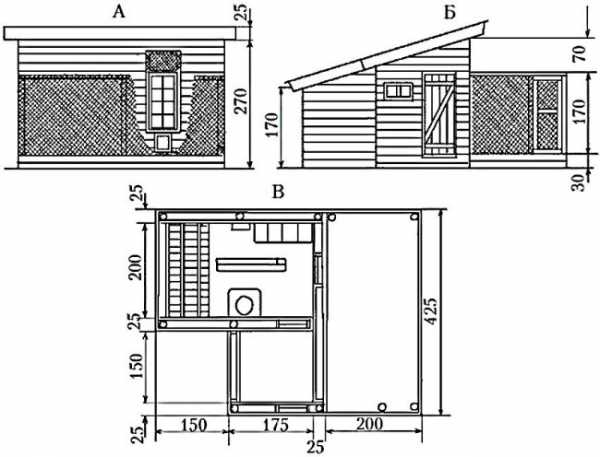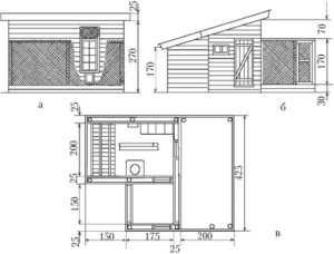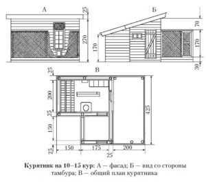 Чертеж с размерами курятника на 10-15 кур