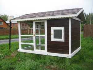 Конечно, можно установить и кровлю с одним скатом, но тогда наклон должен находиться напротив входной двери, чтобы после дождя вода не попадала во двор для выгула.