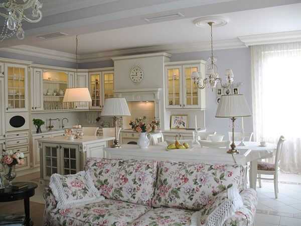 Нередко проектировщики советуют зонировать кухню и гостиную с помощью разных стилей, однако гармоничное пространство можно получить только благодаря общности направления. К тому же, Прованс довольно сложно сочетать с другими стилями из-за его ярко выраженного колорита.