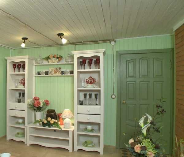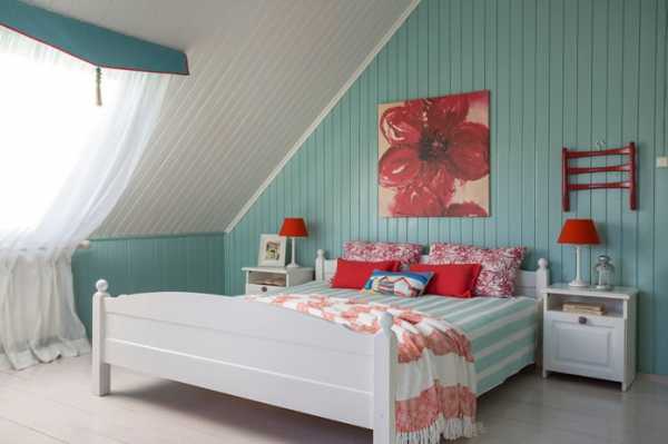 - Для отделки стен желательно применять спокойные цвета (белый, бежевый, светло-серый, оливковый). Они создают атмосферу покоя и умиротворения. Деревянные стены покрывают прозрачным лаком, чтобы оставить их природный оттенок. Однотонную цветовую гамму разбавляют яркими аксессуарами.