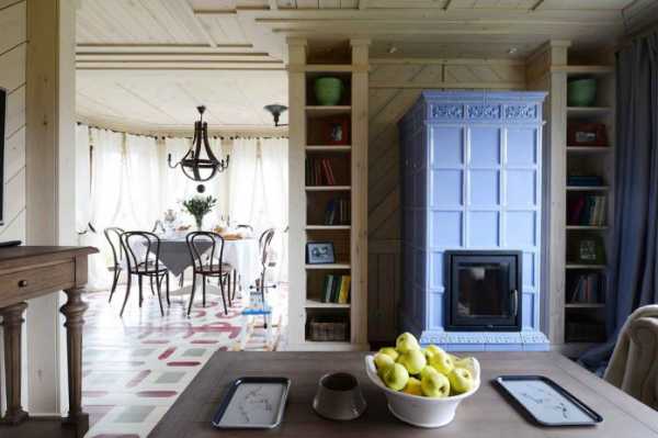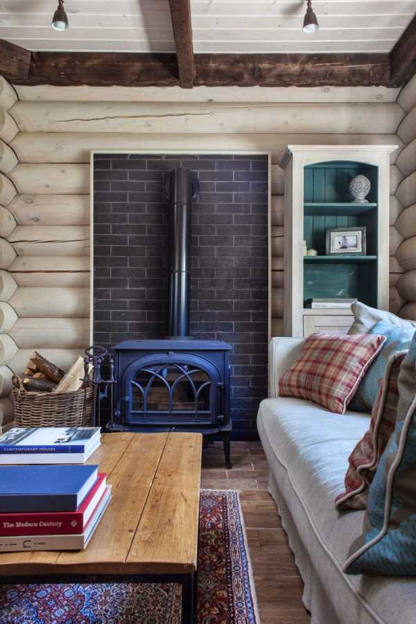 У тех, кто наведывается на дачу в зимний период, гостиная комната — это место отдыха, оборудованное отоплением. Обычно это печь или настоящий камин.