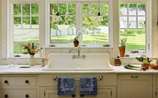 Размещение мойки под окном в кухне — отличный способ сэкономить место в комнате и разнообразить процесс мытья посуды. Такое размещение требует проведения коммуникаций к месту установки раковины. Об этом нужно позаботиться еще на этапе проектирования комнаты.