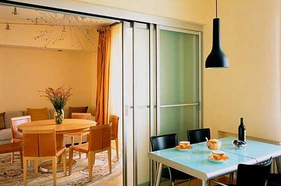 Кардинальный вариант решения проблемы — это установить в комнате раздвижные перегородки или двери гармошки. На самом деле это довольно хлопотно и не слишком удобно, зато вы легко сможете уединиться возле конфорки и заняться приготовлением любимых кулинарных шедевров.