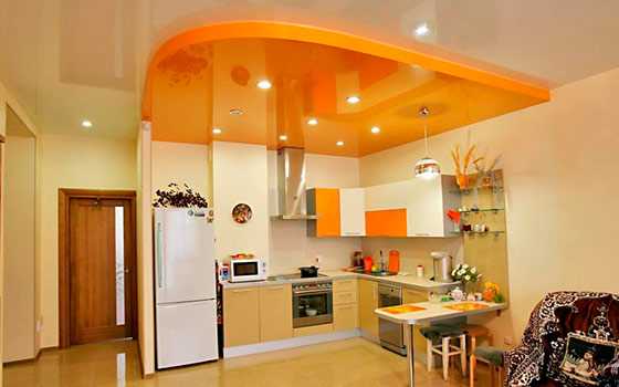 Привлекательность данного приема очевидна. Есть куда спрятать скрытый свет или какие-нибудь коммуникации, без которых кухне никак.