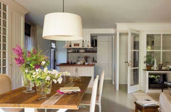 Из аксессуаров будут уместны семейные фото, шкатулки, старые часы, лампы с тканевыми абажурами, статуэтки. Не забудьте о букетах цветов. Подойдут как композиции из свежих растений, так и сухих. Гостиная на даче не обойдется без декоративного текстиля. Он должен быть изготовлен из натуральных тканей и быть очень простым. Можно использовать скатерти, шторы или покрывала из бабушкиного сундука. Можно сшить изделия своими руками, избегая обилия складок или вычурных узоров. Если комната совмещает зону для приготовления пищи и зону для отдыха, то интерьер кухни дополнит старинная посуда и самовар.