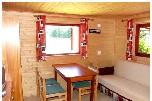 - Угловая конструкция — отличный и эргономичный вариант для оформления дачного домика. Он позволяет уместить всю необходимую мебель и освободить один из углов комнаты.