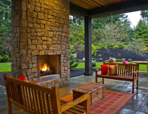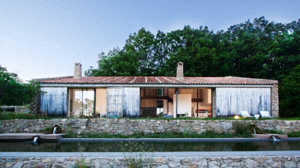 Каменный дом следует украсить по низу кладки камнями, посадить у фундамента вьющиеся растения, цветы. Рядом органично будут смотреться каменные вазоны, мангал или металлический забор.