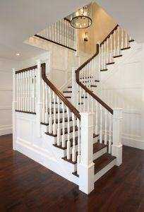 Лестница в классическом стиле никогда не выйдет из моды. Сочетание цветов очень выигрышное. Оно подчеркивает четкость линий.