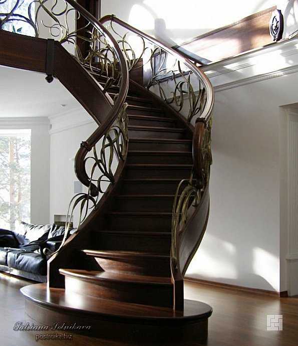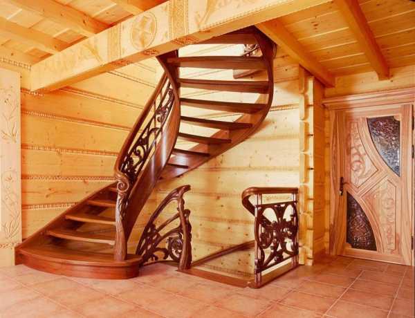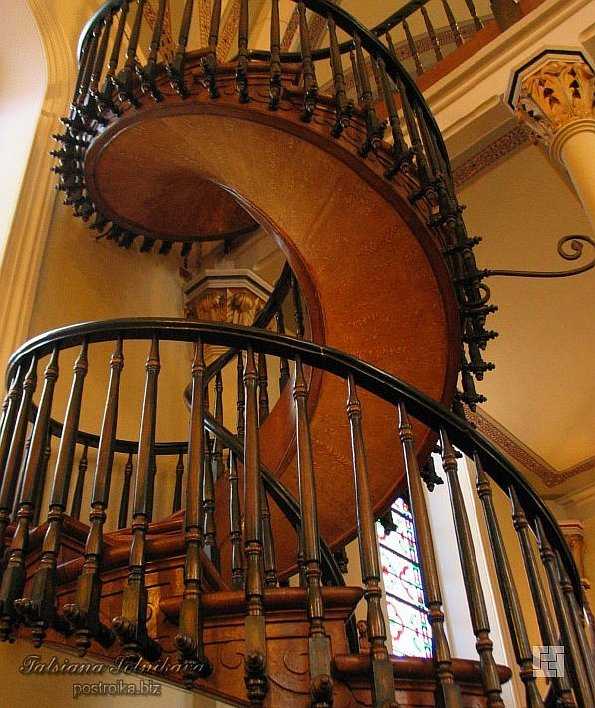 Такая лестница достойна императорского дворца. Бесподобно красивы массивные резные перила.Винтовые деревянные лестницы